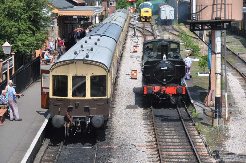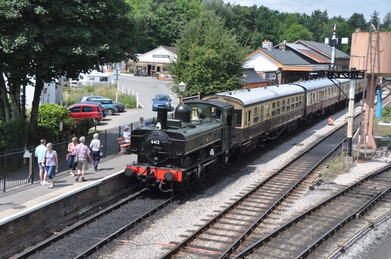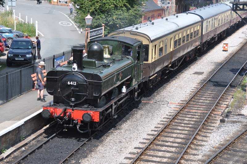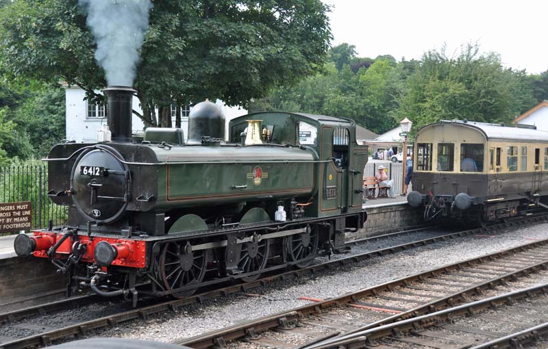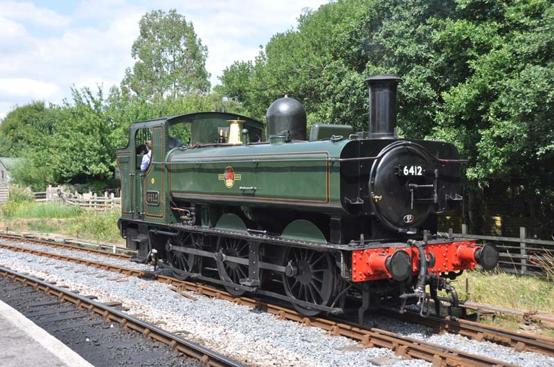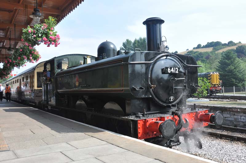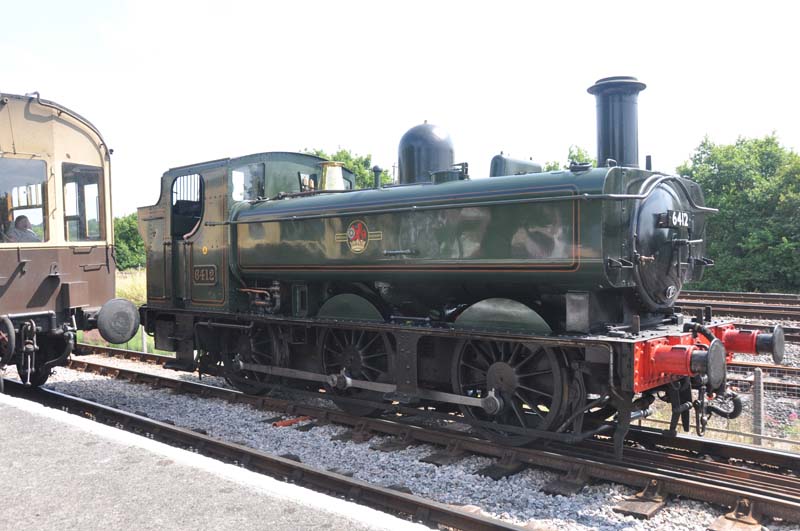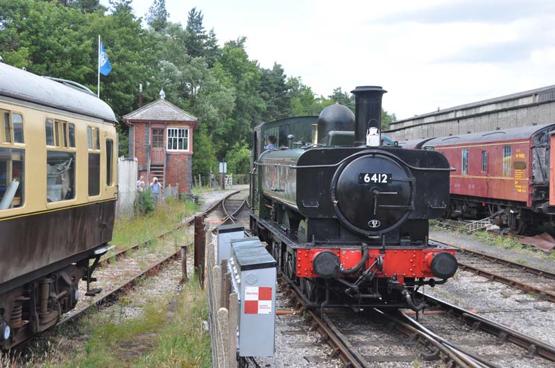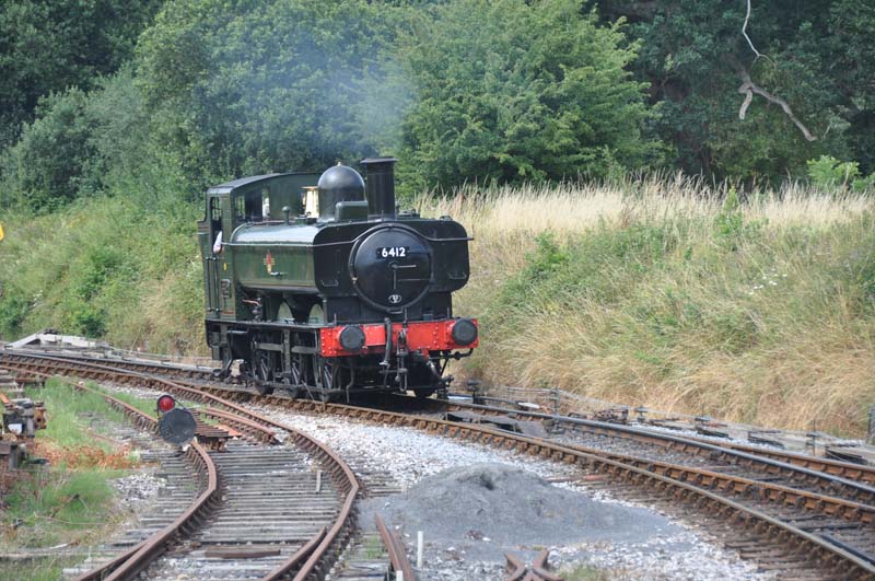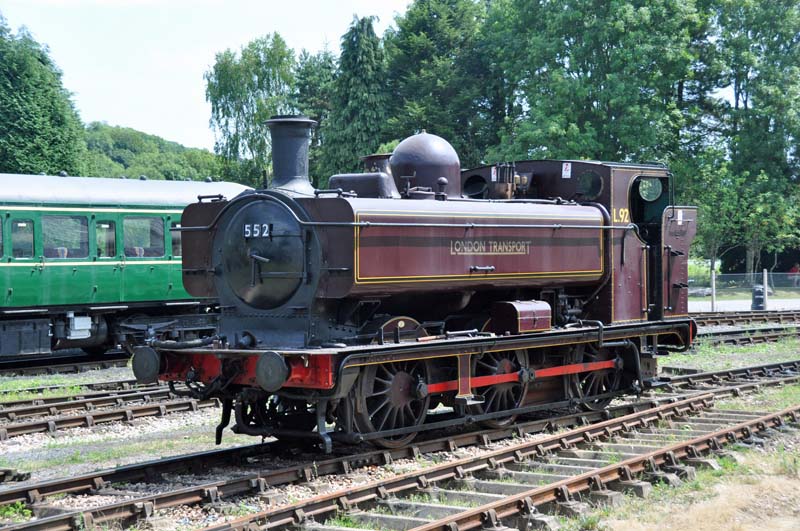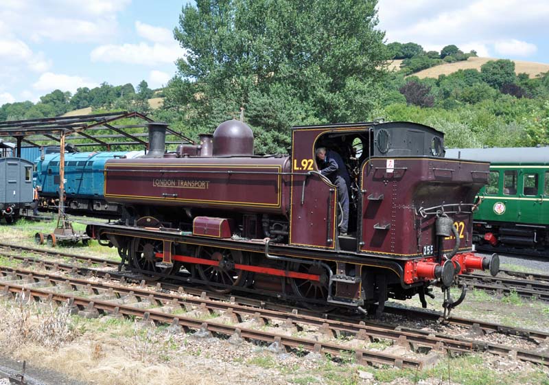 GWR 57xx class no.5786 in London Transport livery as no.L92 in the yard at Buckfastleigh.