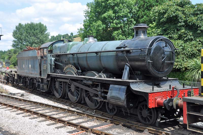 GWR Hall class no.4920 Dumbleton Hall awaiting restoration in the yard at Buckfastleigh.