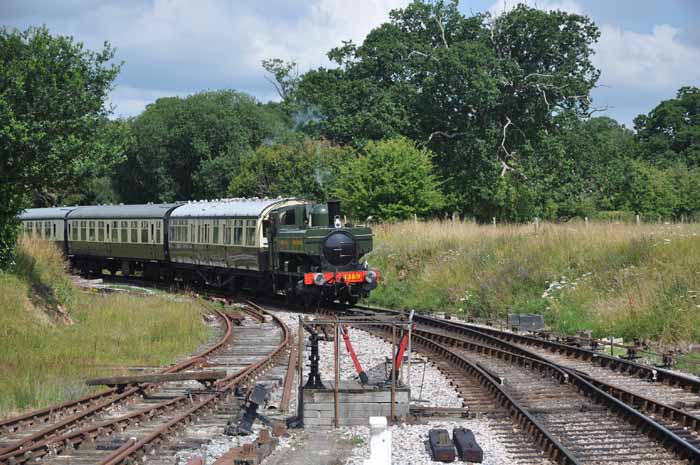 GWR 1366 class pannier tank no.1369 approaching Totnes Littlehempston.