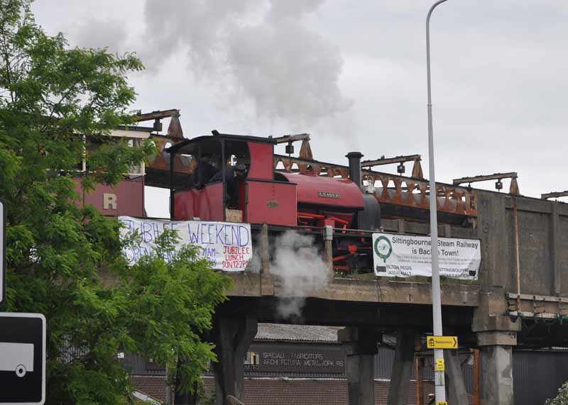 Leader on the Sittingbourne Viaduct approaching the station.