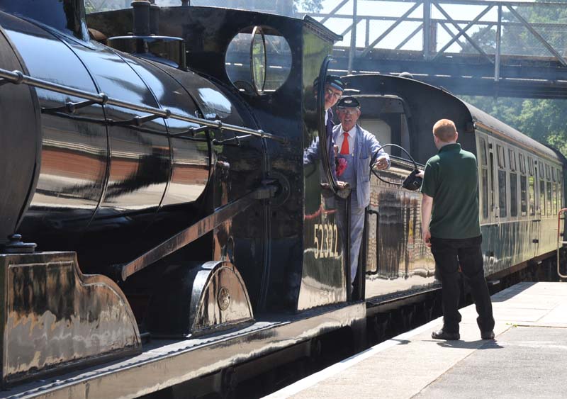 52322's crew take the token from the signalman on arrival at Groombridge.
