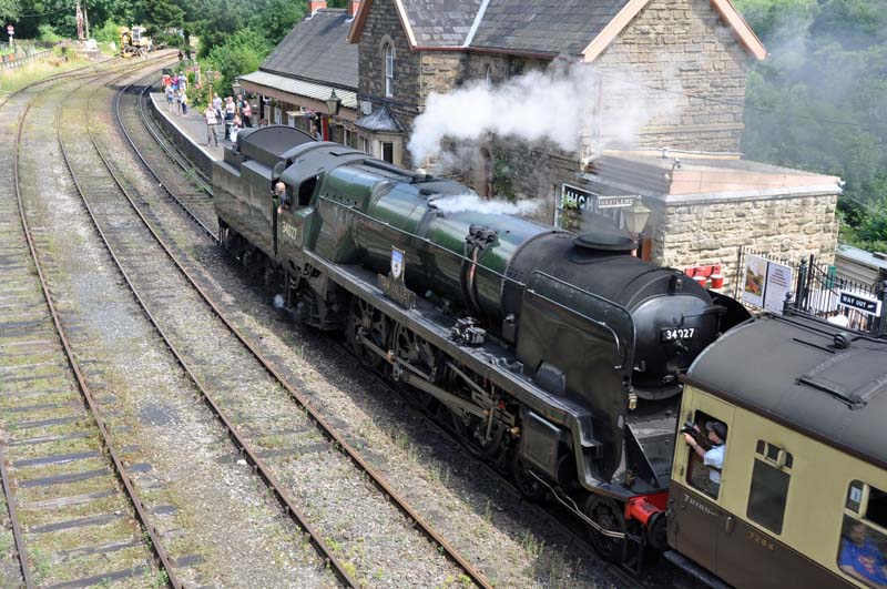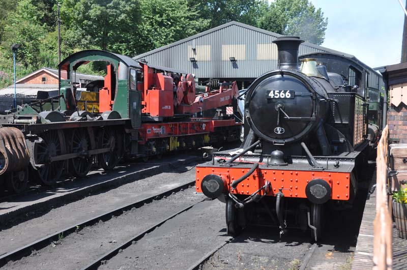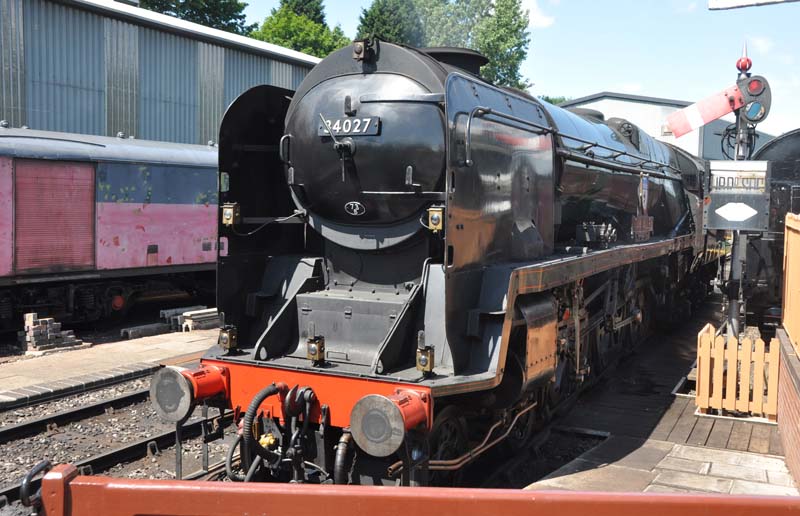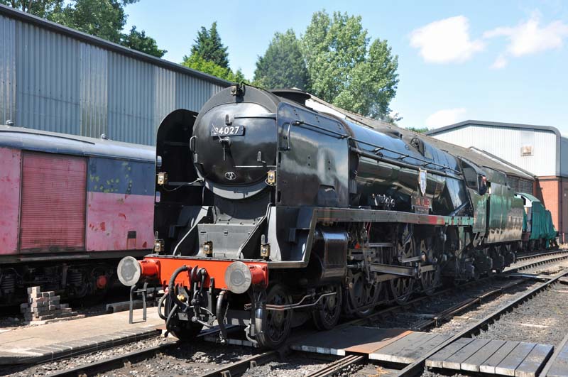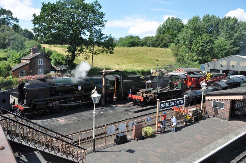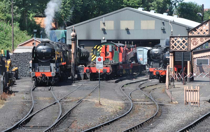 34027 Taw Valley, 34053 Sir Keith Park and 4566 in Bridgnorth loco yard.