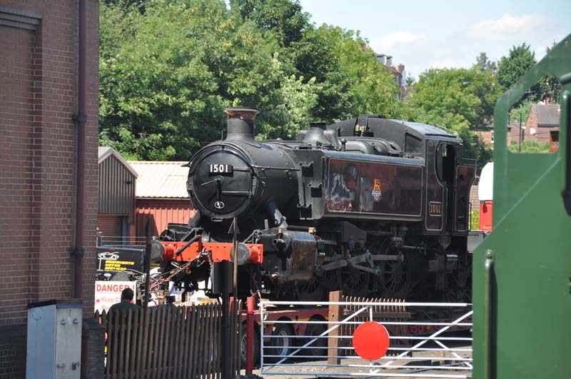 1501 at Bridgnorth on a low-loader ready for transport to visit another railway.