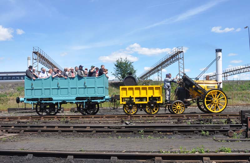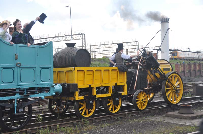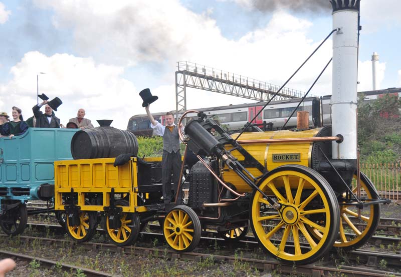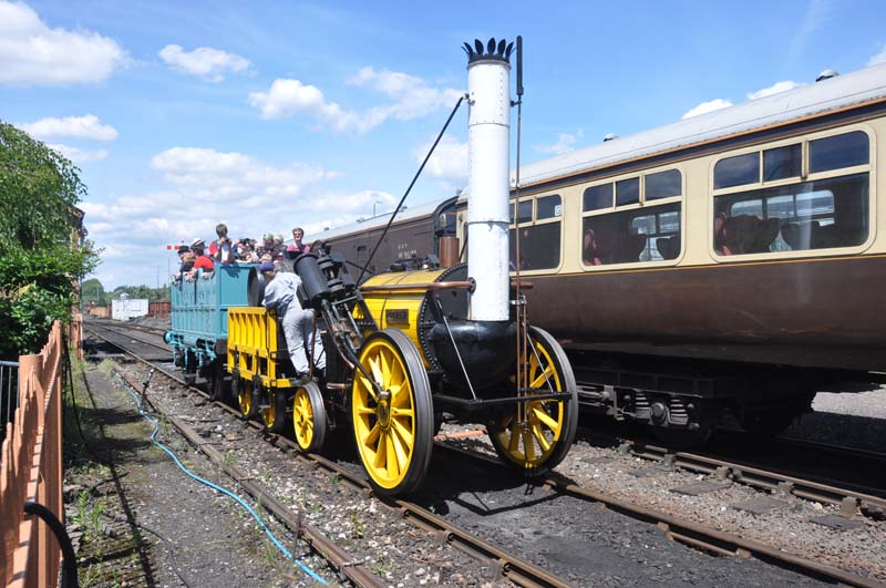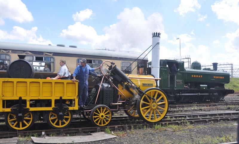 Stephenson's Rocket and 7752 on the demonstration line.