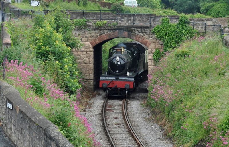 GWR Manor class no.7828 Odney Manor arriving at Watchet.