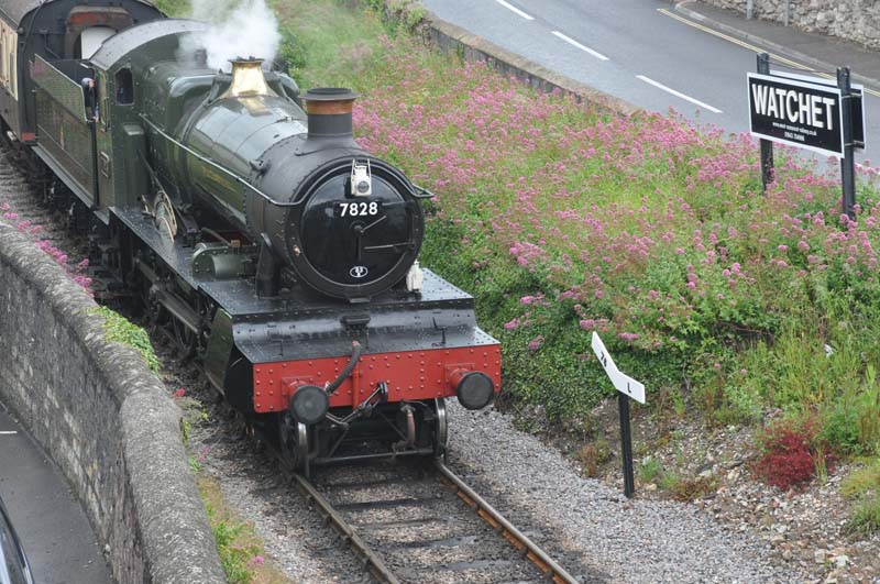GWR Manor class no.7828 Odney Manor approaching Watchet.