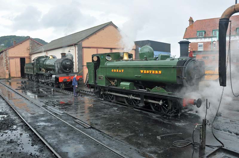GWR Manor class no.7802 Bradley Manor and 7752 in the loco yard at Minehead.