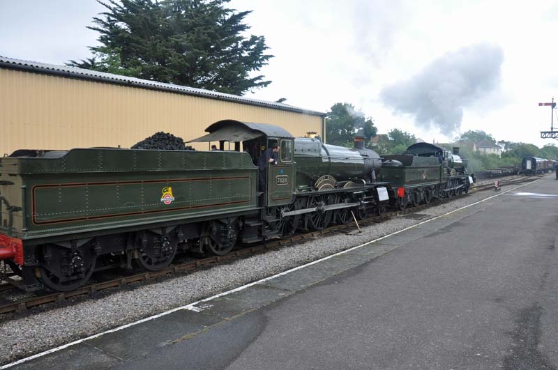 7828 Odney Manor and 7802 Bradley Manor arrive at Bishops Lydeard with the double-header.