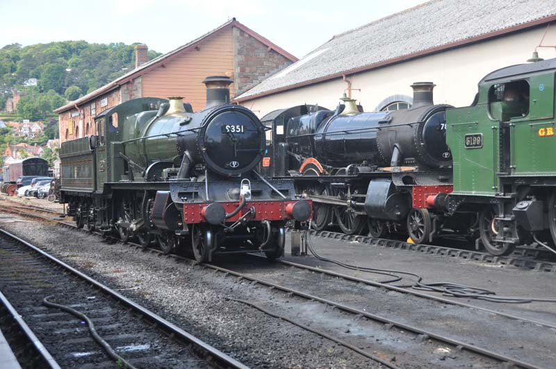 9351 at Minehead alongside 7822 Foxcote Manor and 5199.