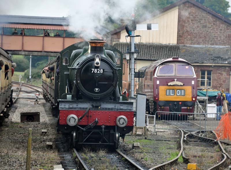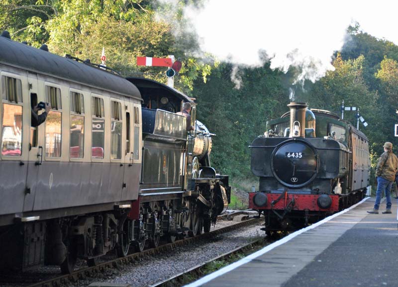 6435 arriving at Crowcombe Heathfield while 7828 Odney Manor waits to depart.