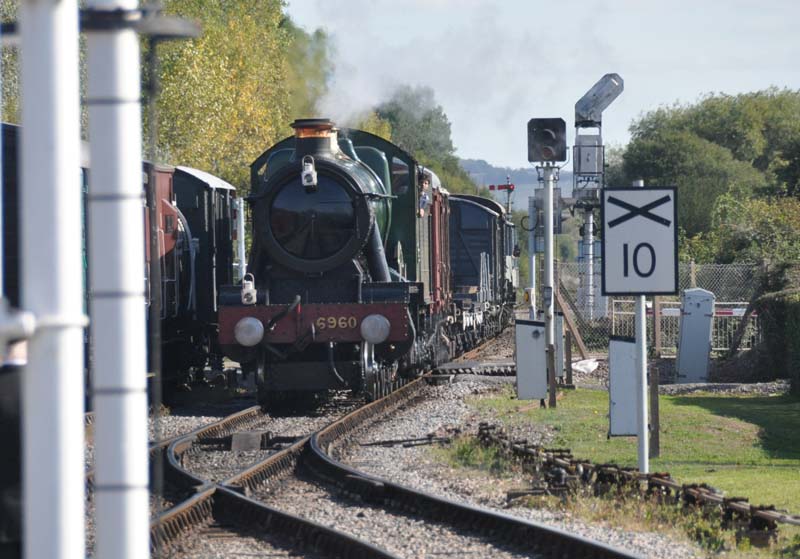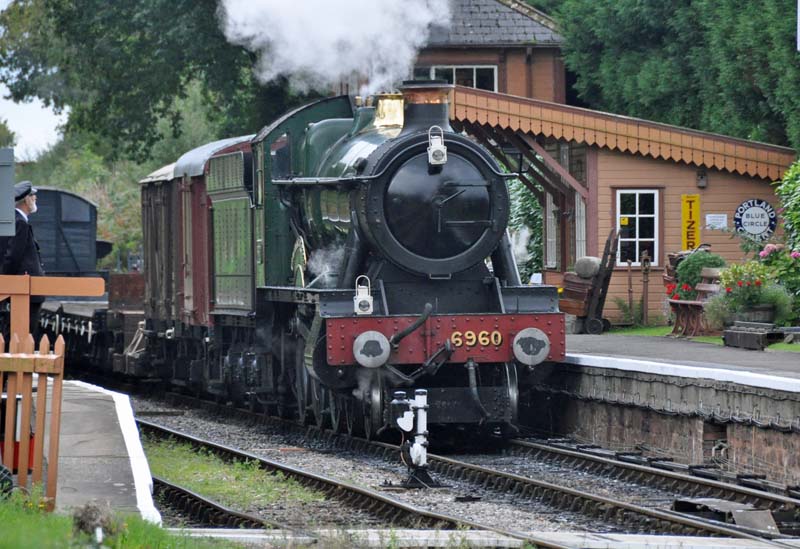 6960 Raveninham Hall arriving at Bishops Lydeard with the goods train.