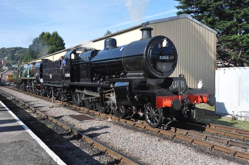 53808 and 34052 Lord Dowding prepare to double-head a train from Bishops Lydeard.