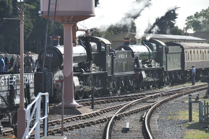 7820 Dinmore Manor and 7822 Foxcote Manor waiting to double-head a train out of Bishops Lydeard.