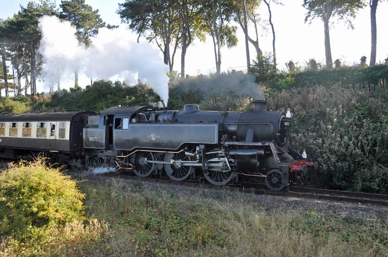 53808 and 73082 Camelot double-heading a train from Blue Anchor.