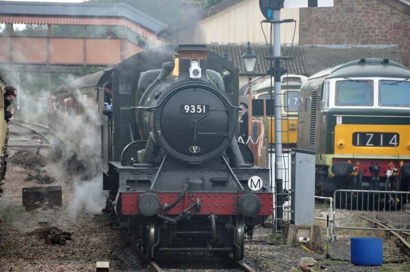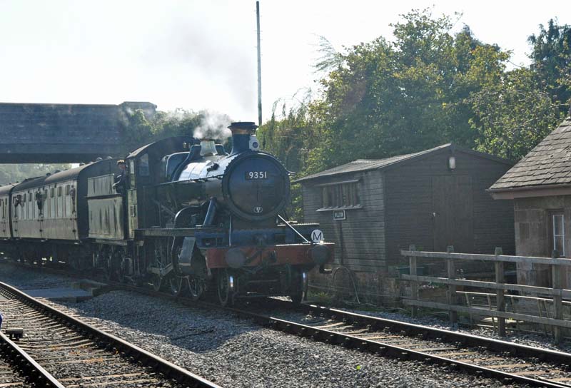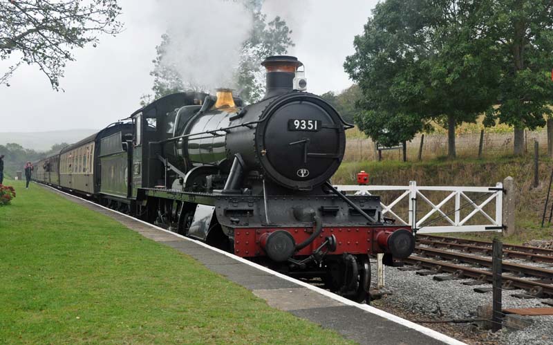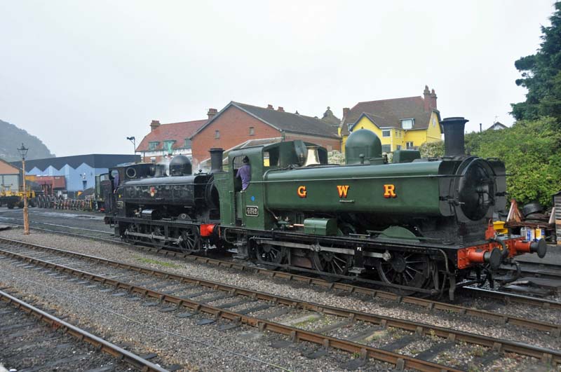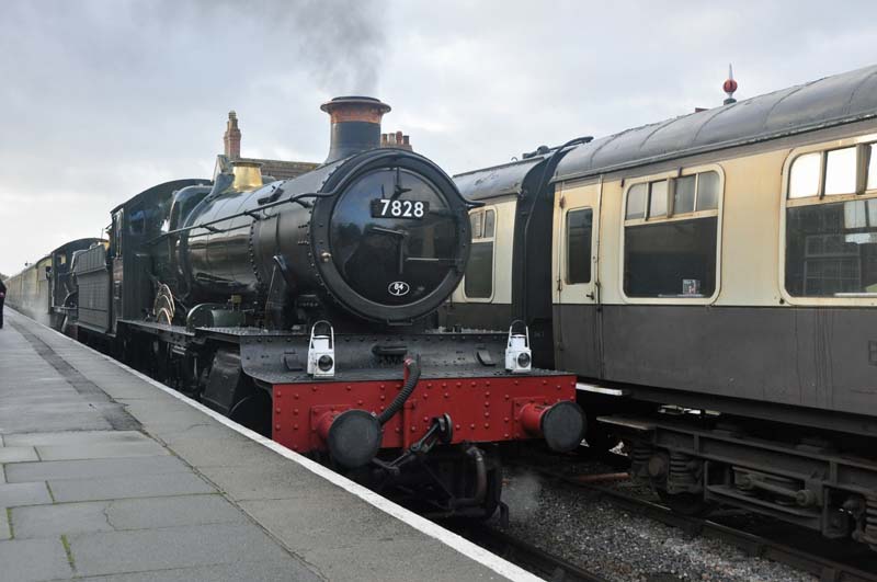 9351 and 7828 Odney Manor prepare to double-head a train from Bishops Lydeard.