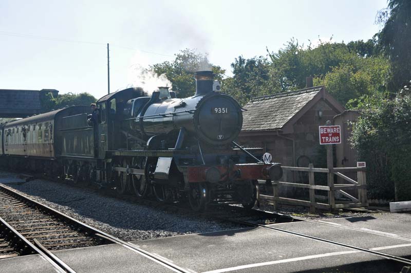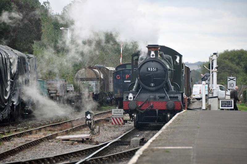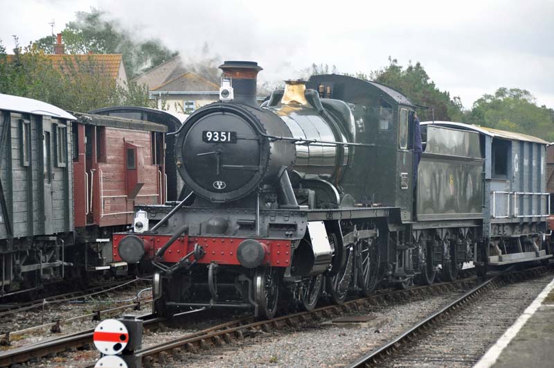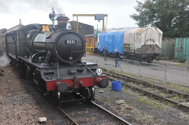 (GWR)WSR Mogul no.9351 approaching Minehead with the goods train.