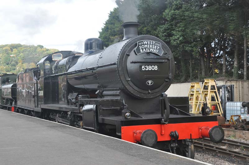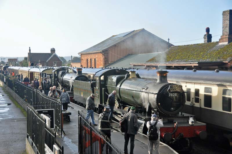 7822 Foxcote Manor and 7828 Odney Manor prepare to double-head a train from Bishops Lydeard.
