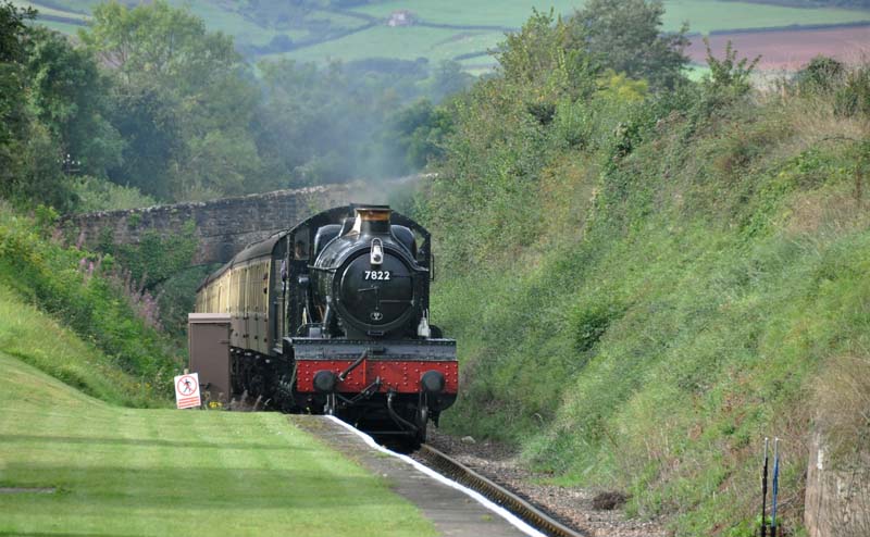 GWR Manor class no.7822 Foxcote Manor approaching Washford.