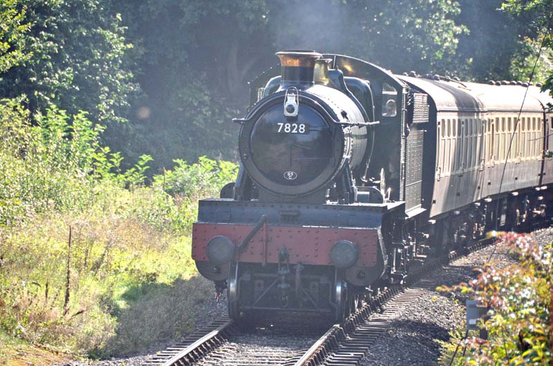 GWR Manor Class no.7828 Odney Manor approaching Stogumber.