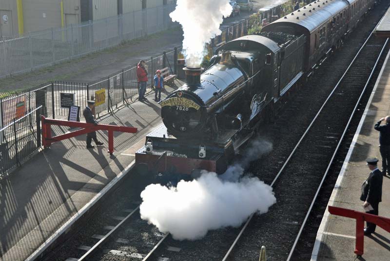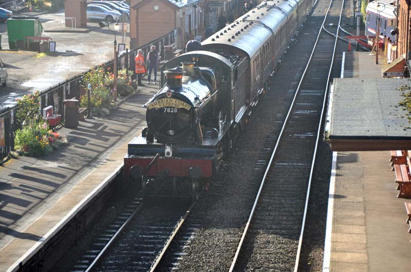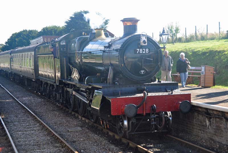 GWR Manor Class no.7828 Odney Manor waiting to depart from Bishops Lydeard.
