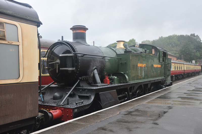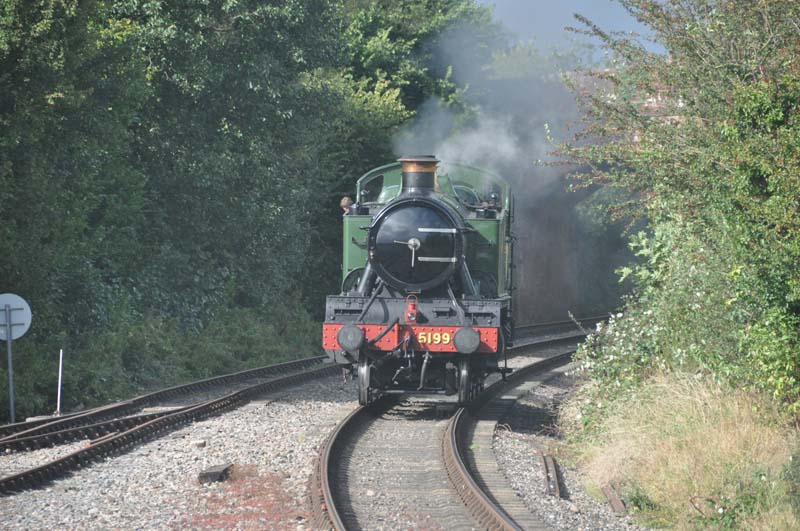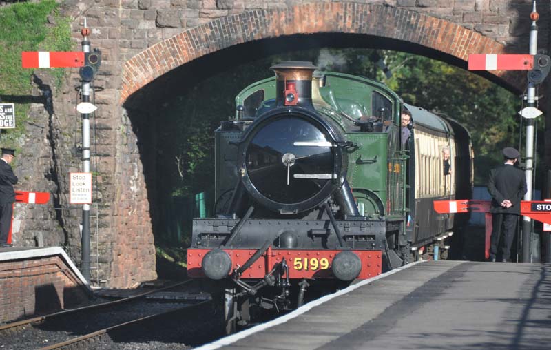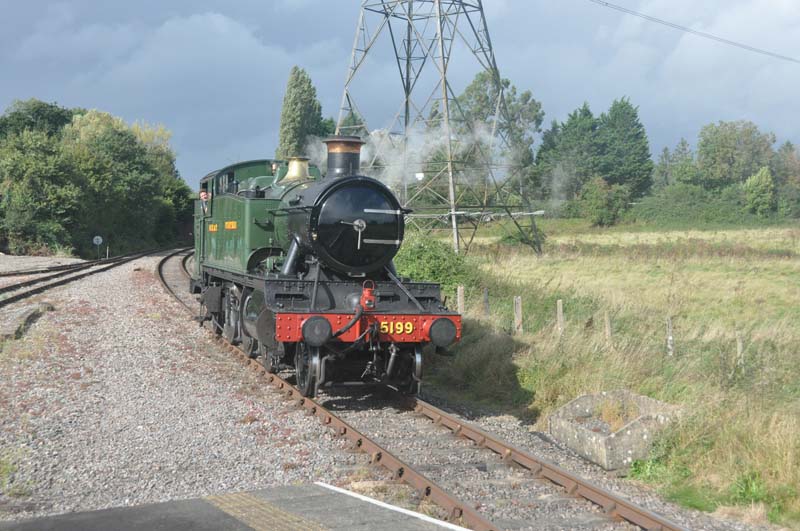 GWR 5101 class Large Prairie no.5199 waiting to depart from Bishops Lydeard.