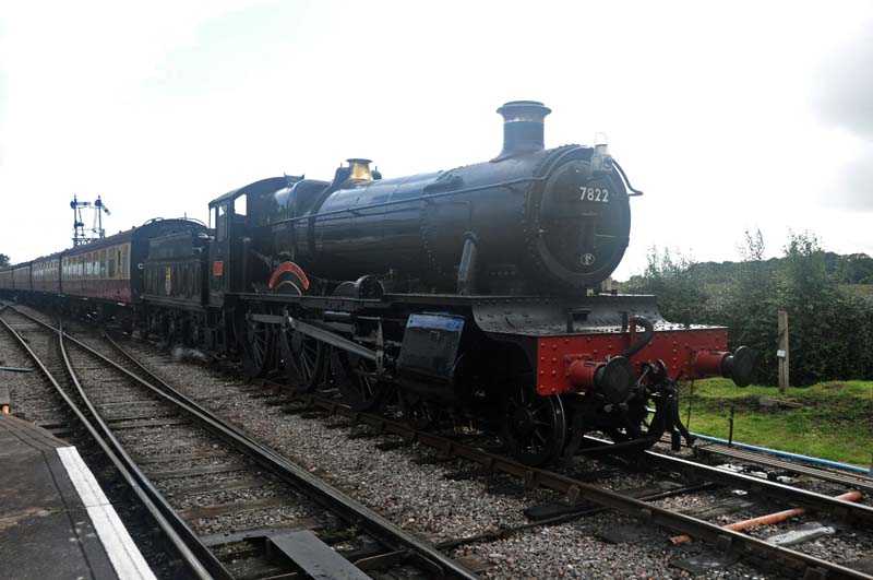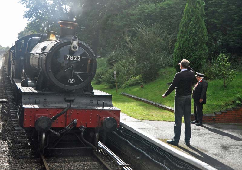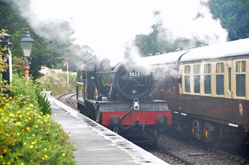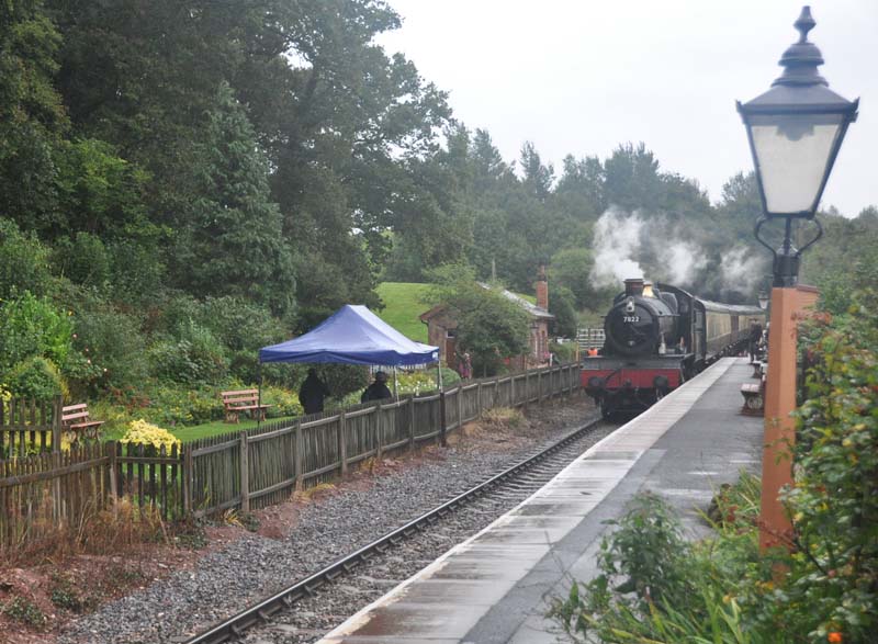 GWR Manor Class no.7822 Foxcote Manor arriving at Stogumber.