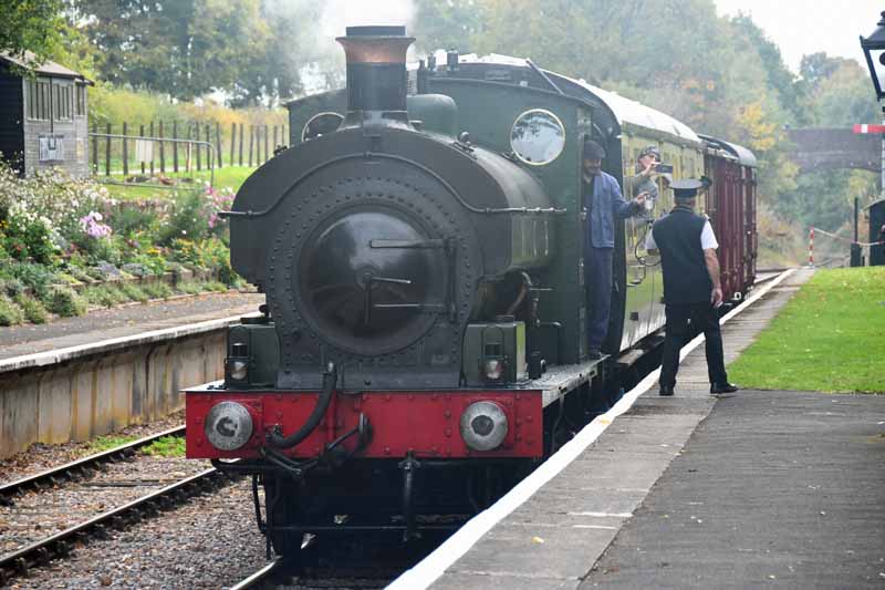 tokens with the signalman at Williton as the train arrives.