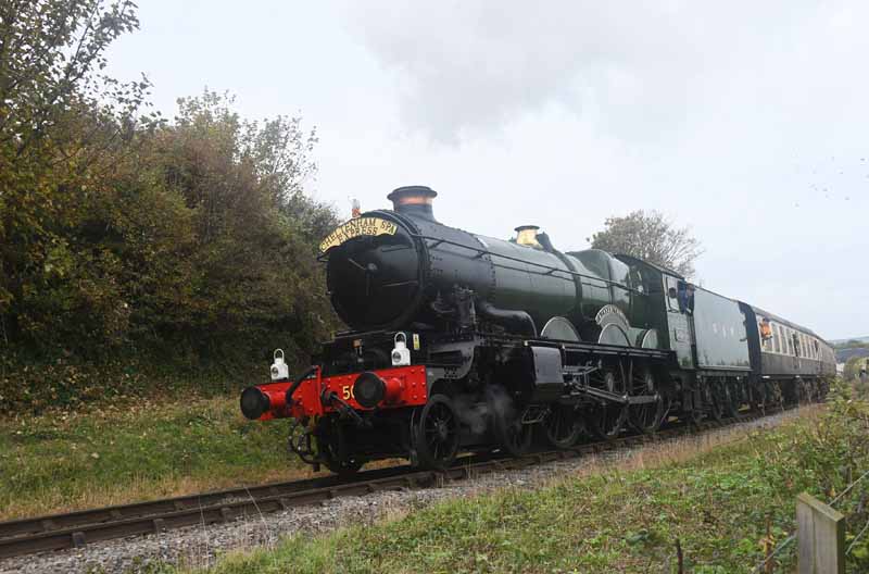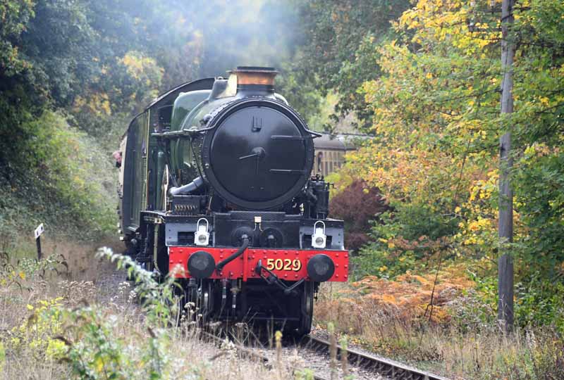 GWR Castle class no.5029 Nunney Castle approaches Crowcombe Heathfield.