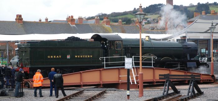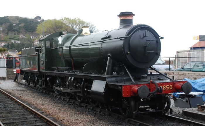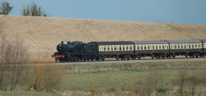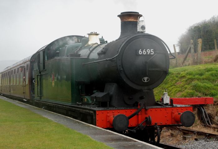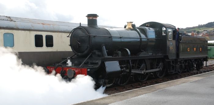 5553 and 4936 Kinlet Hall double-head a train out of Watchet.