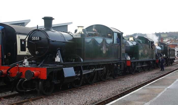 5553, 6695 and 9351 prepare to triple-head a train out of Minehead.