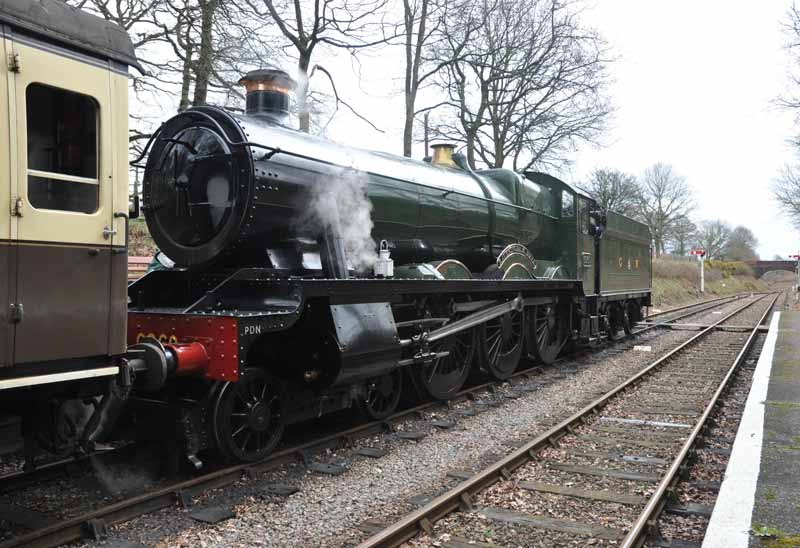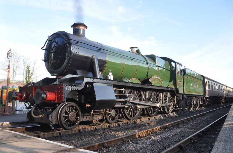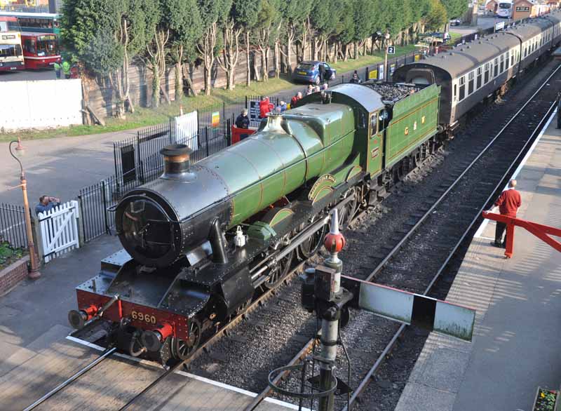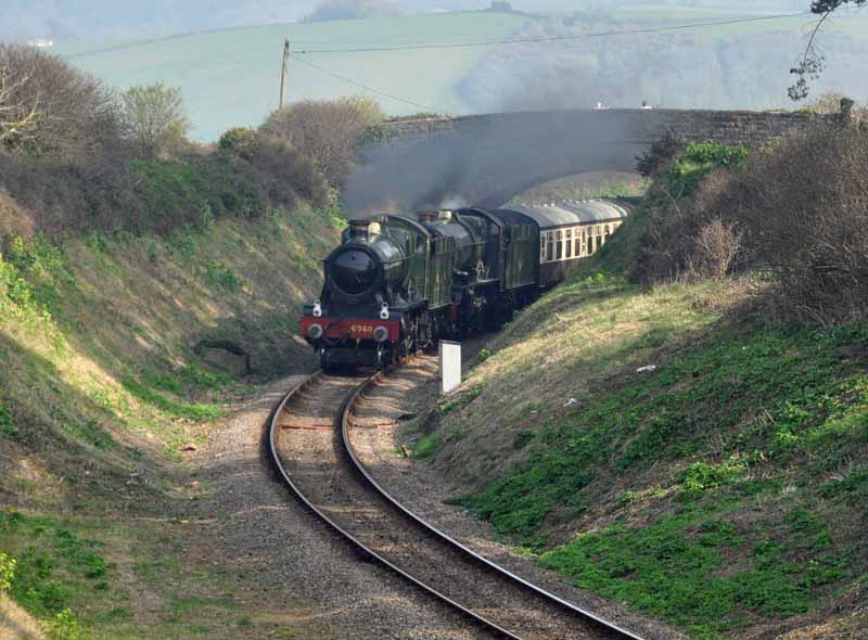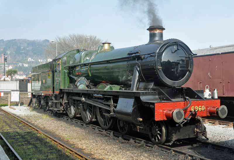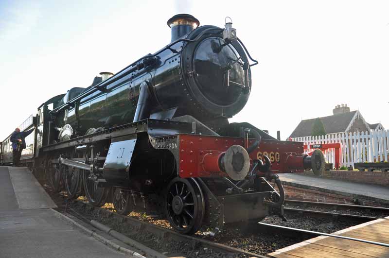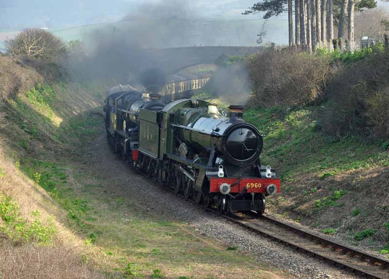 GWR No.6960 Raveningham Hall arriving at Washford.