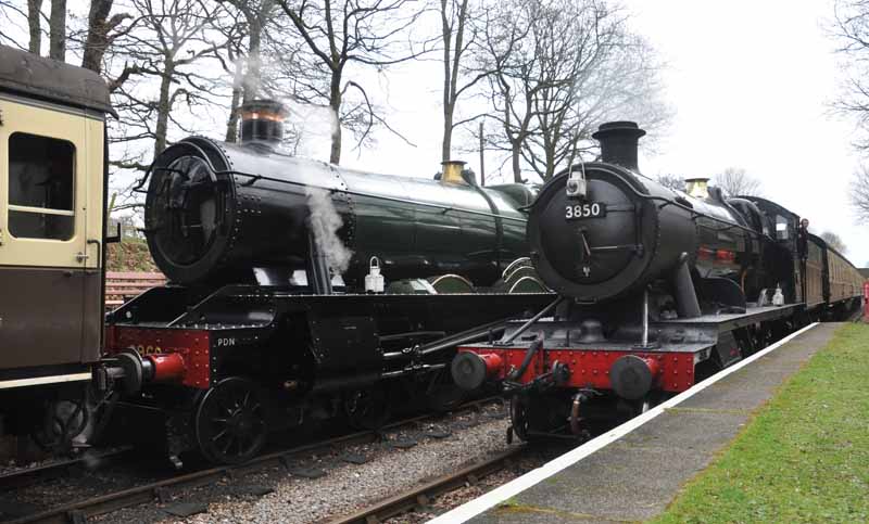 6960 Raveningham Hall and GWR No.3850 at Crowcombe Heathfield.