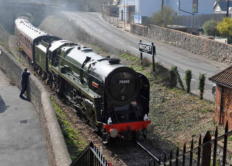 70000 Britannia arrives at Watchet.