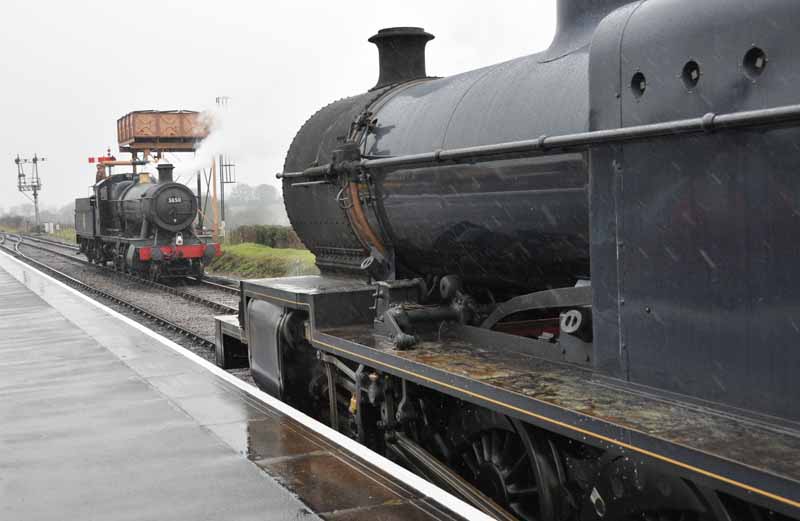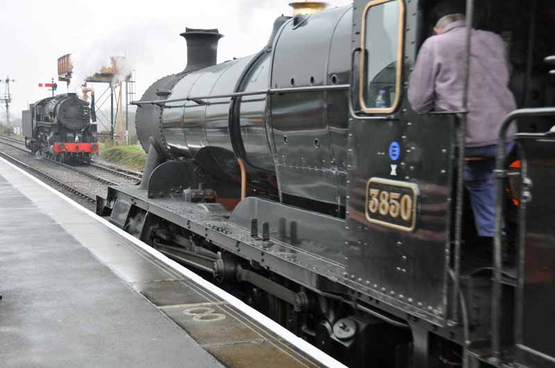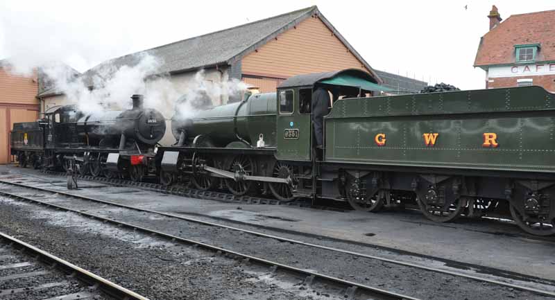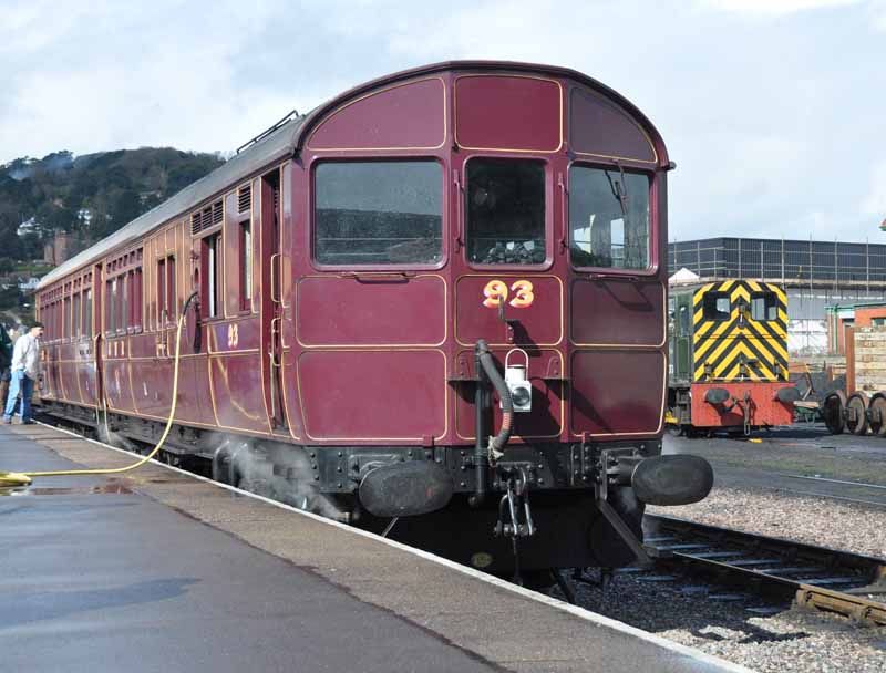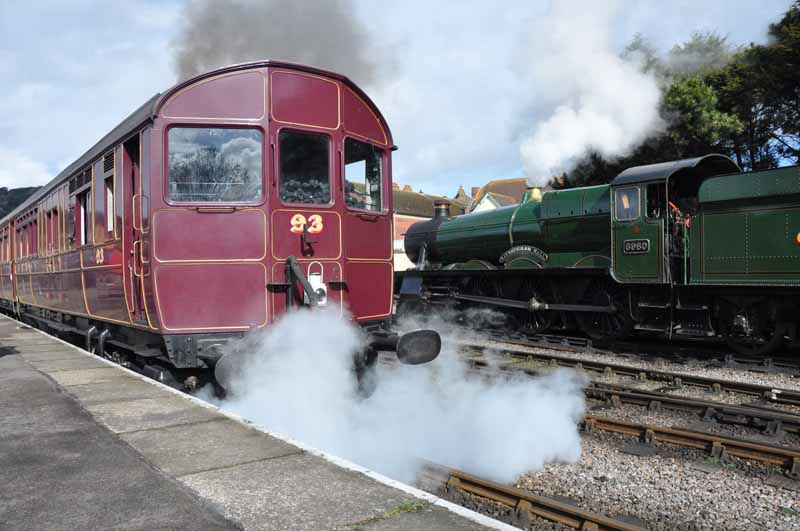 GWR steam raimotor no.93 and 6960 Raveningham Hall at Minehead.
