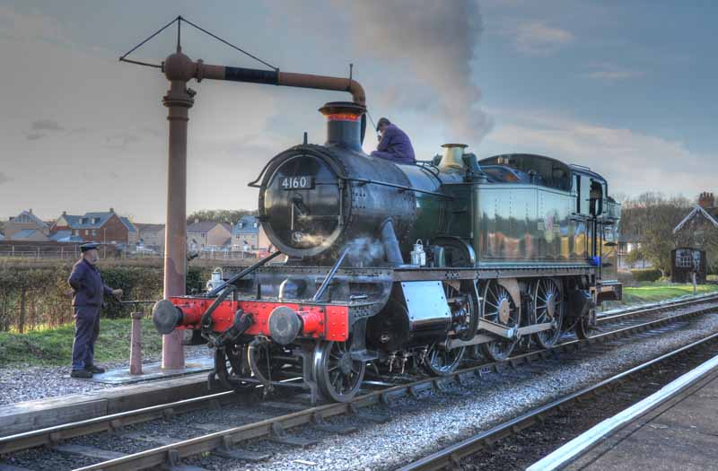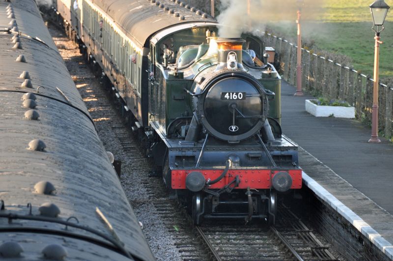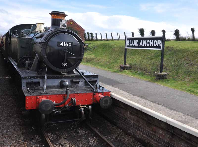 GWR large prairie no.4160 arriving at Blue Anchor.