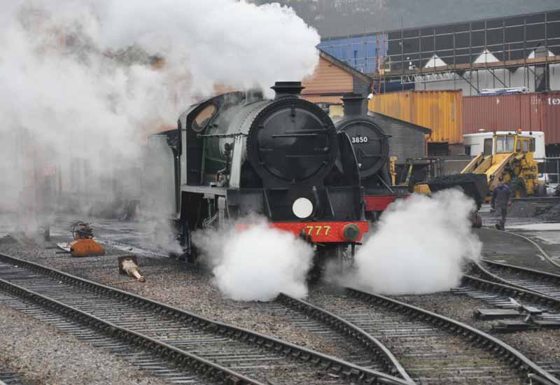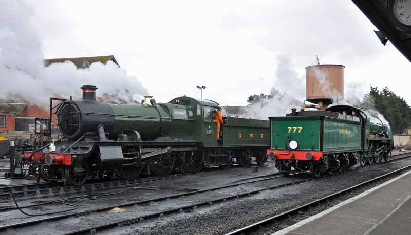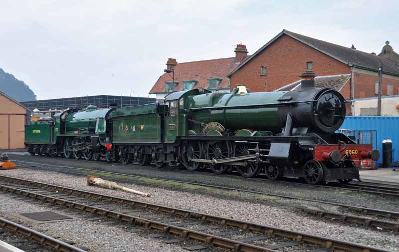 777 Sir Lamiel and 6960 Raveningham Hall in the yard at Minehead.