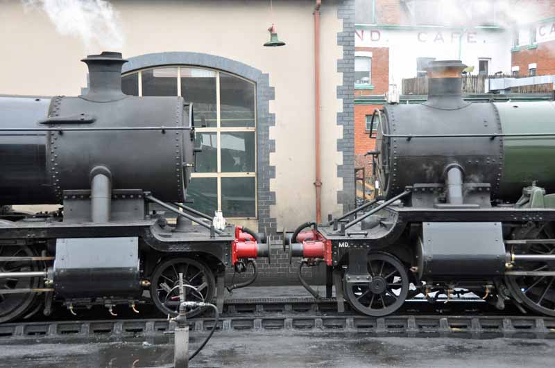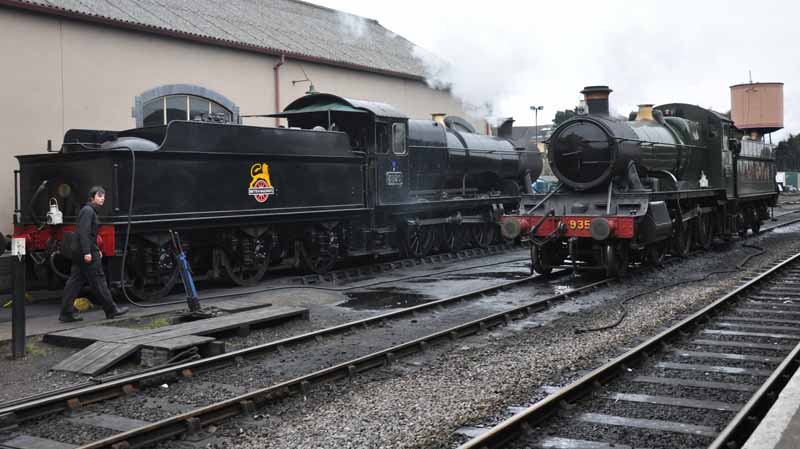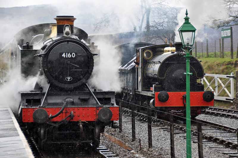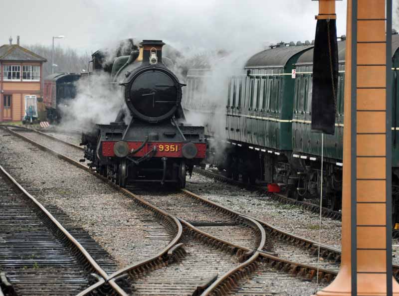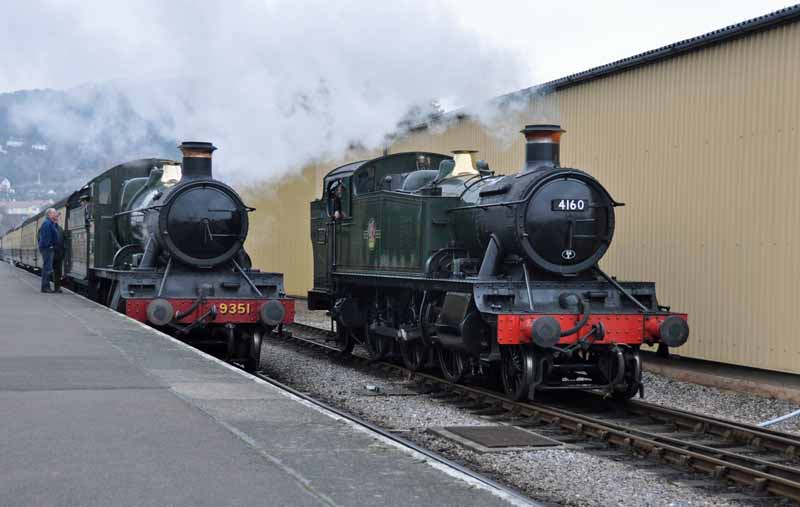 9351 and 4160 preparing to double-head a train out of Minehead.