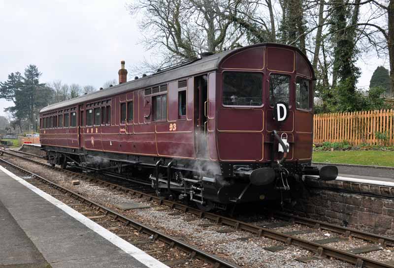 Steam Railmotor no.93 approaching Crowcombe Heathfield.