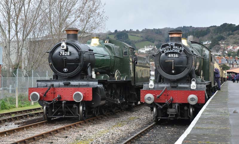6960 Raveningham Hall and, just visible through the steam, 4936 Kinlet Hall
