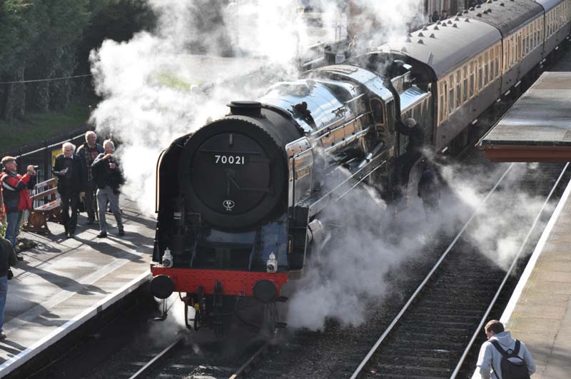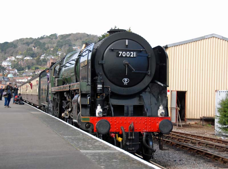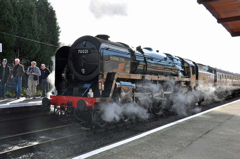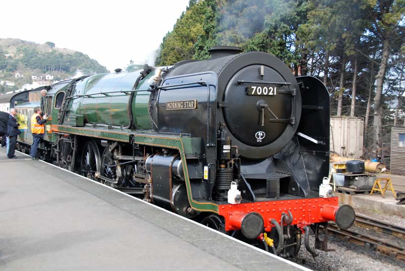 70000 Britannia running as 70021 Morning Star at Bishops Lydeard.