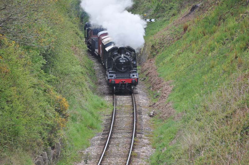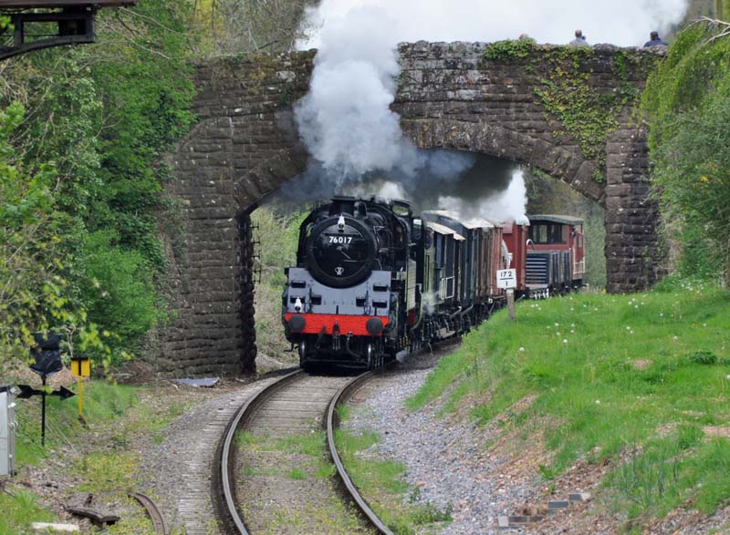 BR Class 4 no.76017 departing from Crowcombe Heathfield.