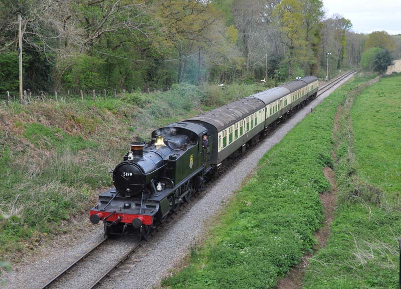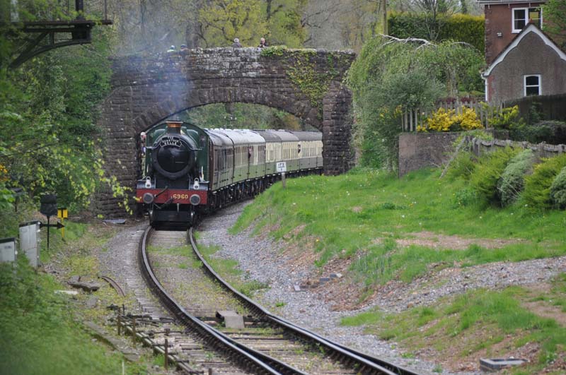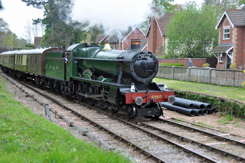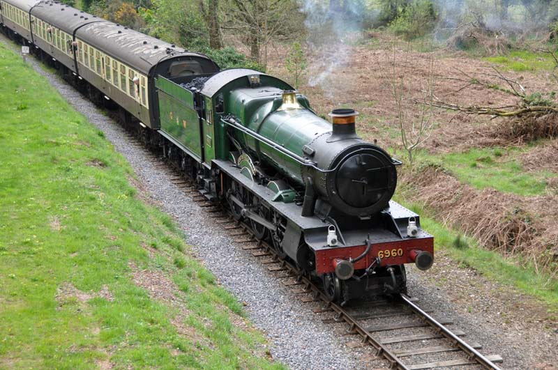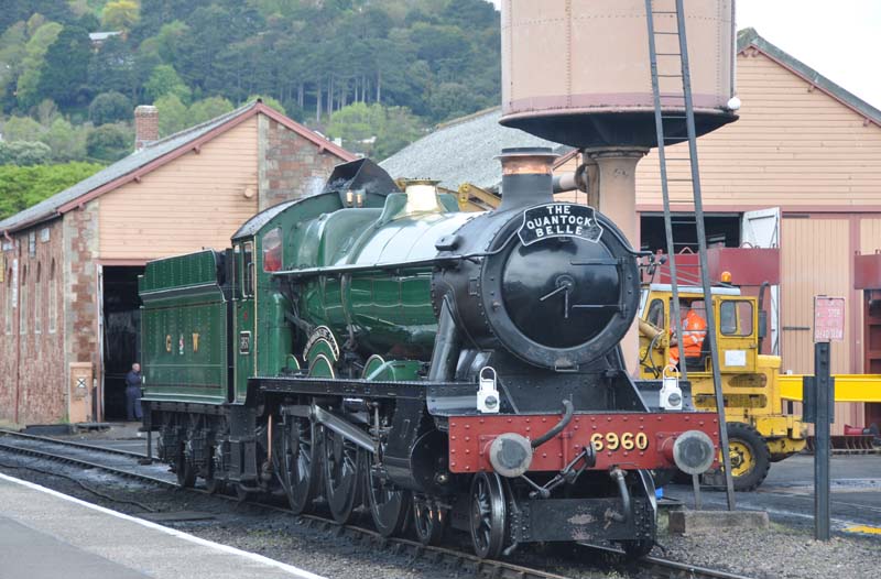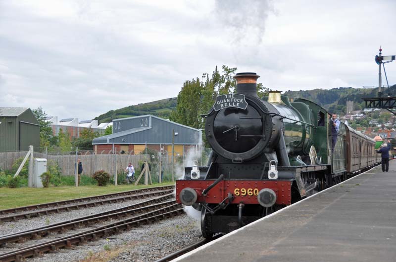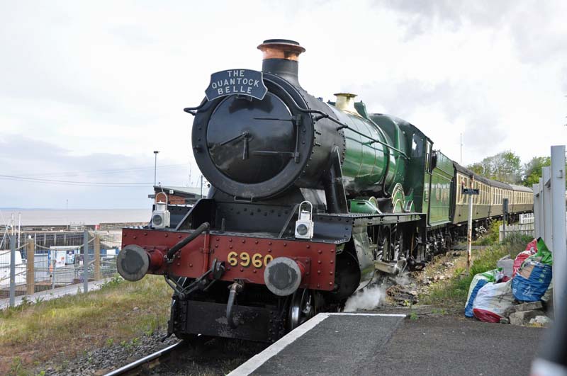 GWR Modified Hall no. 6960 Raveningham Hall approaching Watchet.