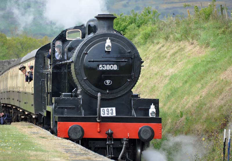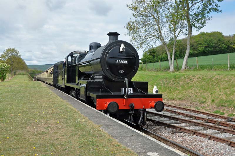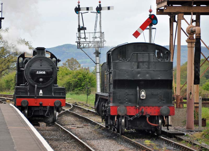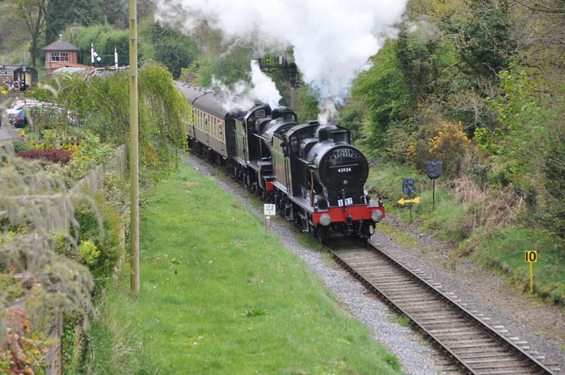 43924 and 53808 double-heading a train from Crowcombe Heathfield.