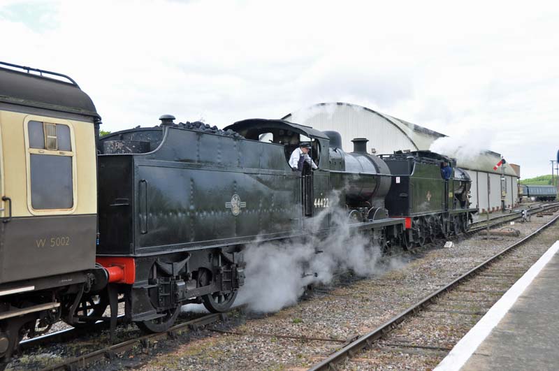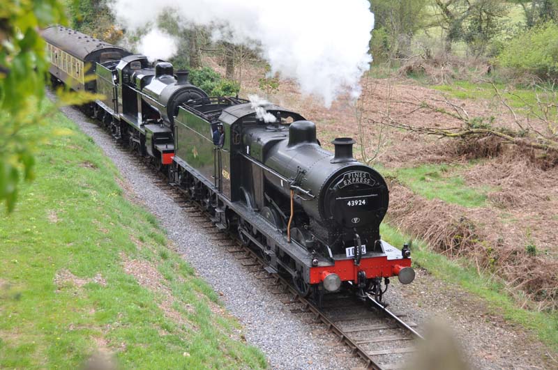 43924 and 44422 double-heading a train at Crowcombe Heathfield.
