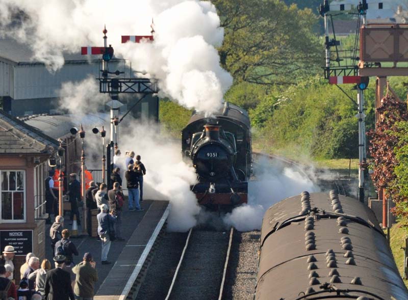 9351 waiting to depart with the first train from Bishops Lydeard.