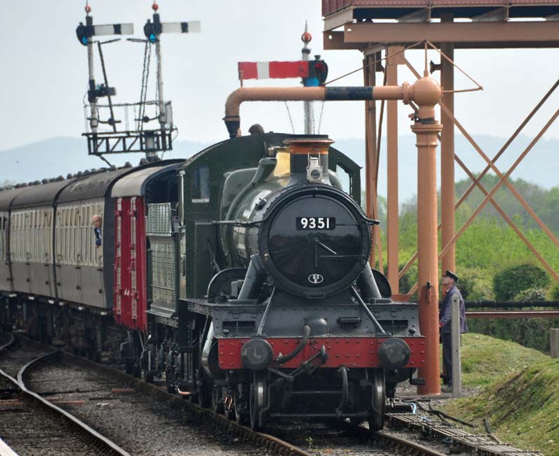 WSR Mogul no.9351 taking on water at Bishops Lydeard.