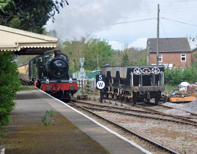 1045 arriving at Crowcombe Heathfield while 7828 Odney Manor