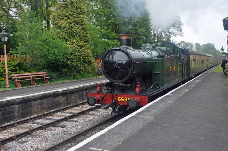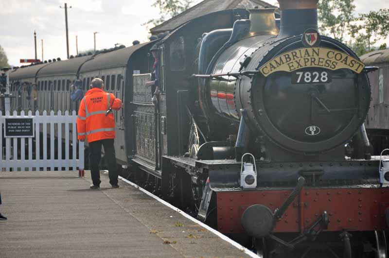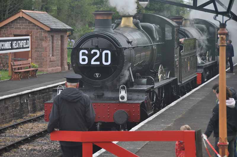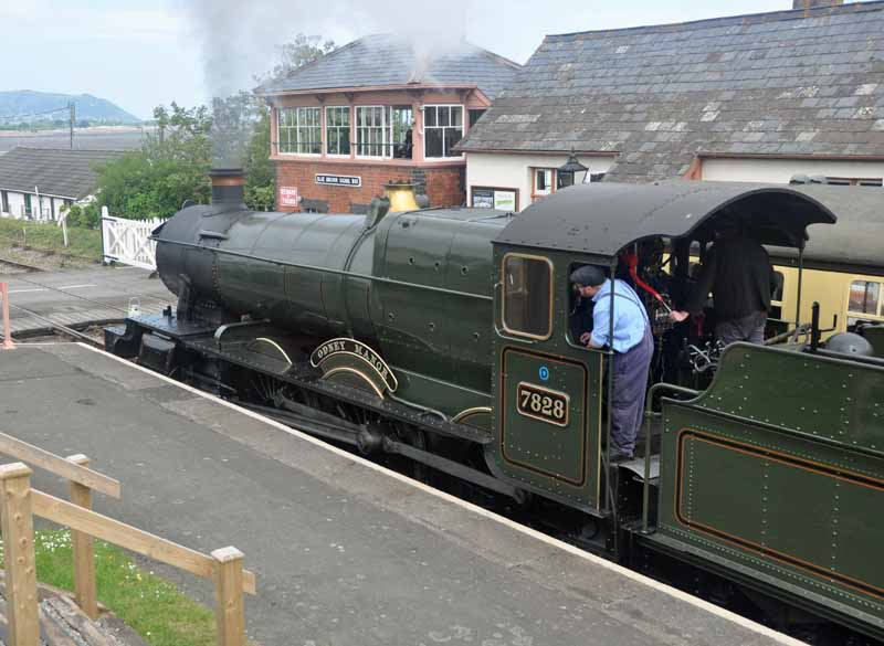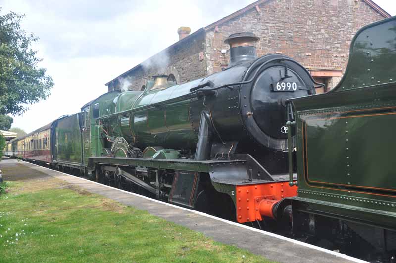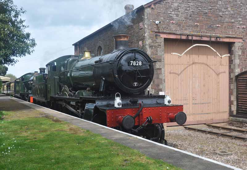 7828 Odney Manor and 6990 Witherslack Hall waiting to depart from Crowcombe Heathfiled.