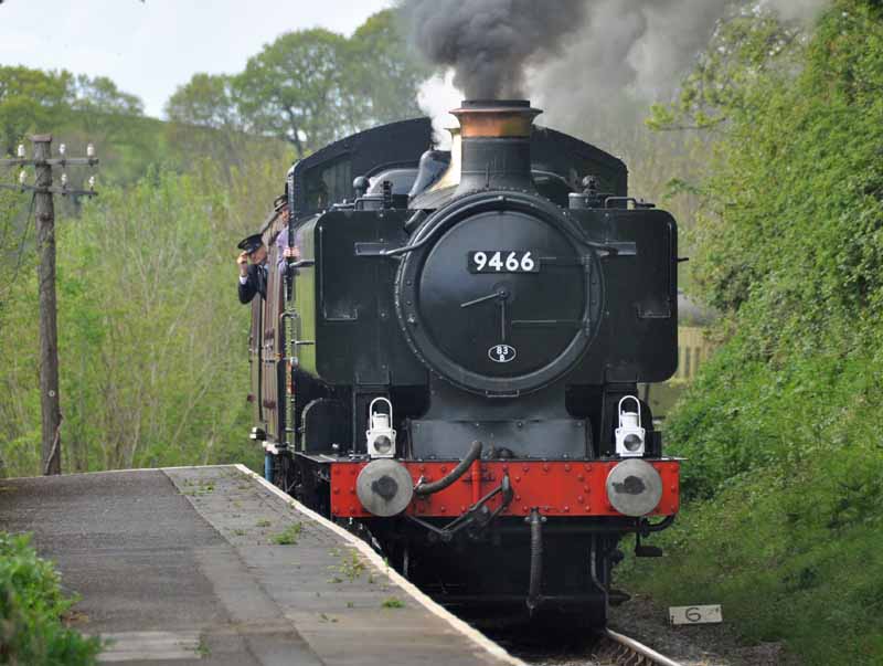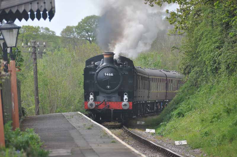 1054 waits as 9466 arrives at crowcombe Heathfield.