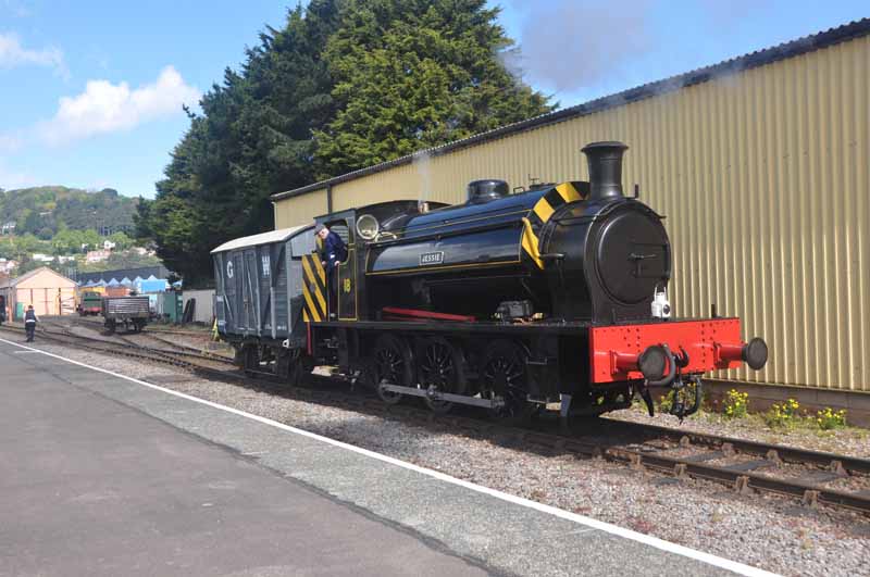 Hunslett no.1873 Jessie with the goods train at Minehead.